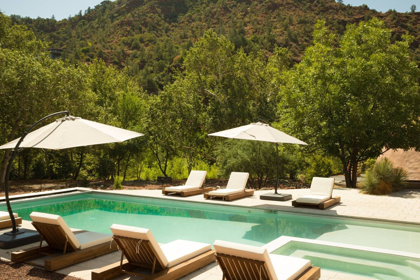 Set on seven private acres along the banks of Oak Creek, the UZU Dome is one of Sedona’s most extraordinary retreat residences. Surrounded by red rock formations, a lush forest, and private creek access, the land offers rare seclusion while remaining minutes from Sedona’s most iconic trails and swimming spots. With expansive decks, a resort-style pool, hot tubs, and dedicated spaces for movement and rest, the environment itself invites stillness, presence, and deep exhale.